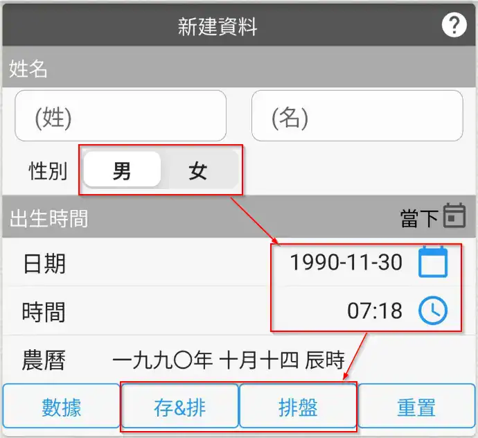 輸入之後就可以選擇直接排盤,或是建立資料庫 (存&排) 的方式排盤: